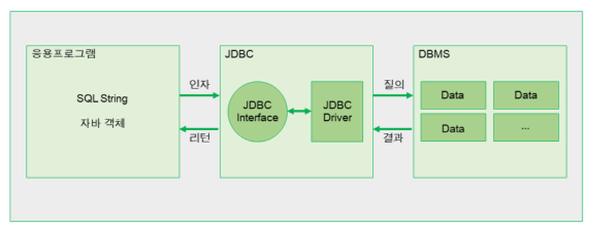 - 자바 애플리케이션에서 DBMS의 종류에 상관없이, 하나의 JDBC API를 이용해 DB 작업을 처리