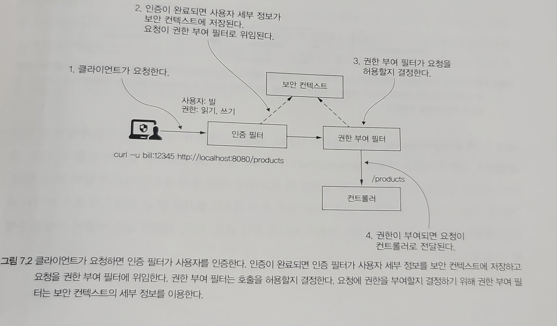 - 인증 프로세스 도중 UserDetailsService는 사용자의 권한을 포함한 모든 세부 정보를 얻음. 애플리케이션은 사용자를 성공적으로 인증한 후 GrantedAuthority 인터페이스로 나타내는 권한으로 권한 부여를 수행함